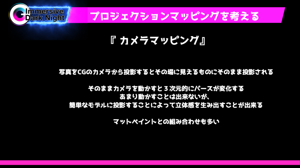 「プロジェクションマッピング、カメラマッピング、inCameraVFX の共通項」